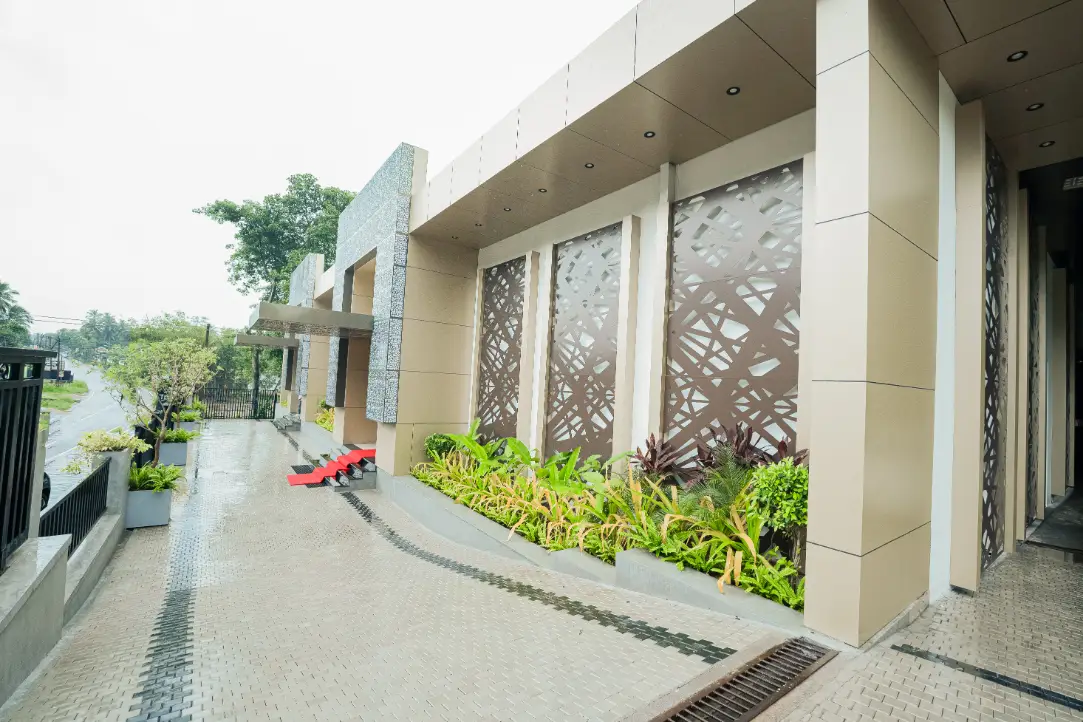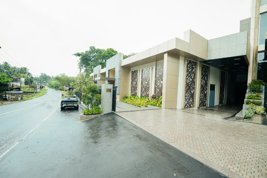 A Striking Exterior and a Convenient Roadside Location Welcome Every Guest with Ease and Sophistication.